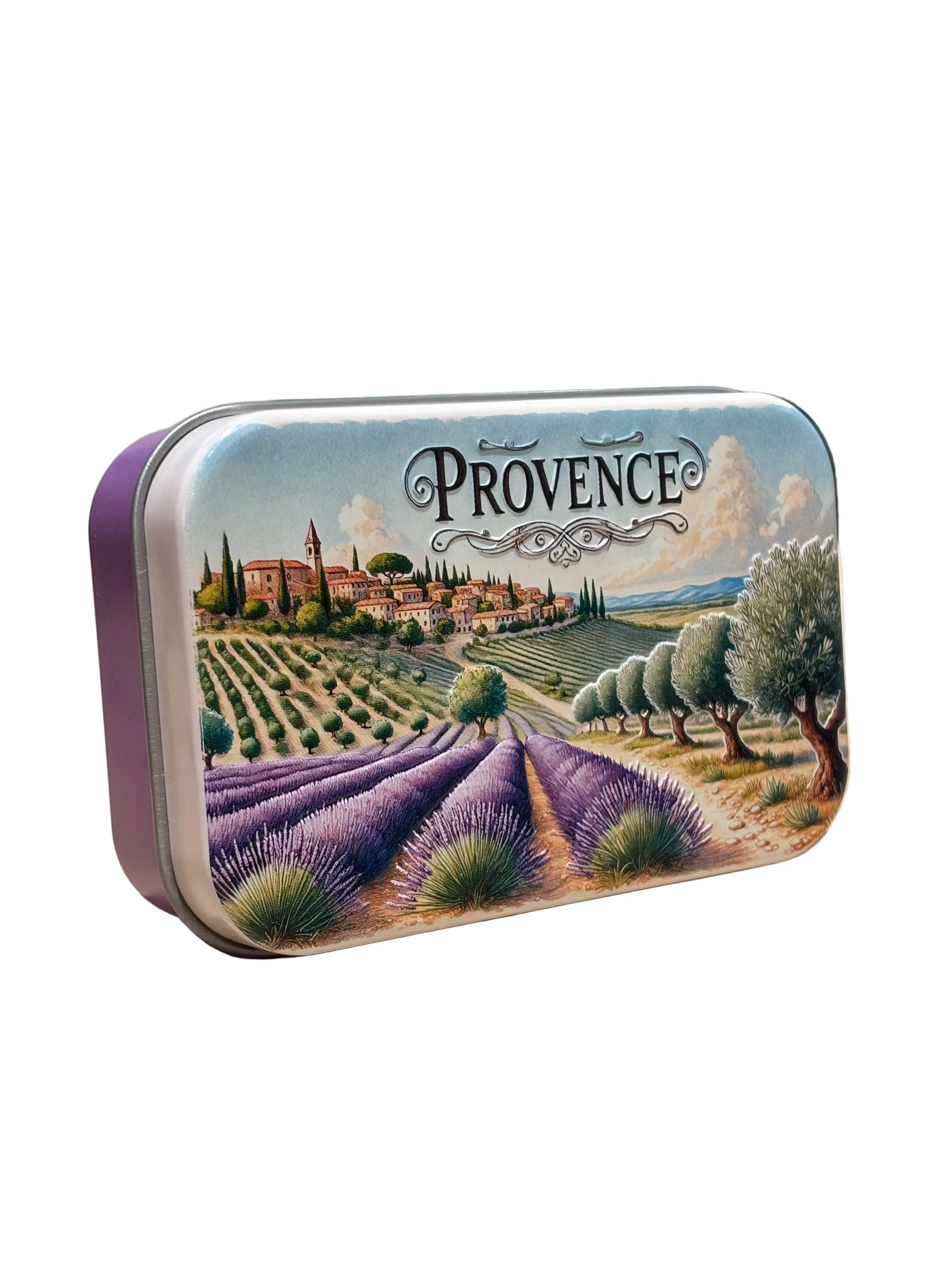 Véritable hommage aux paysages ensoleillés de la région, son illustration colorée capture l'essence même du Midi : Des champs de lavande à perte de vue, des oliviers centenaires et un village perché typique sous un ciel azur.