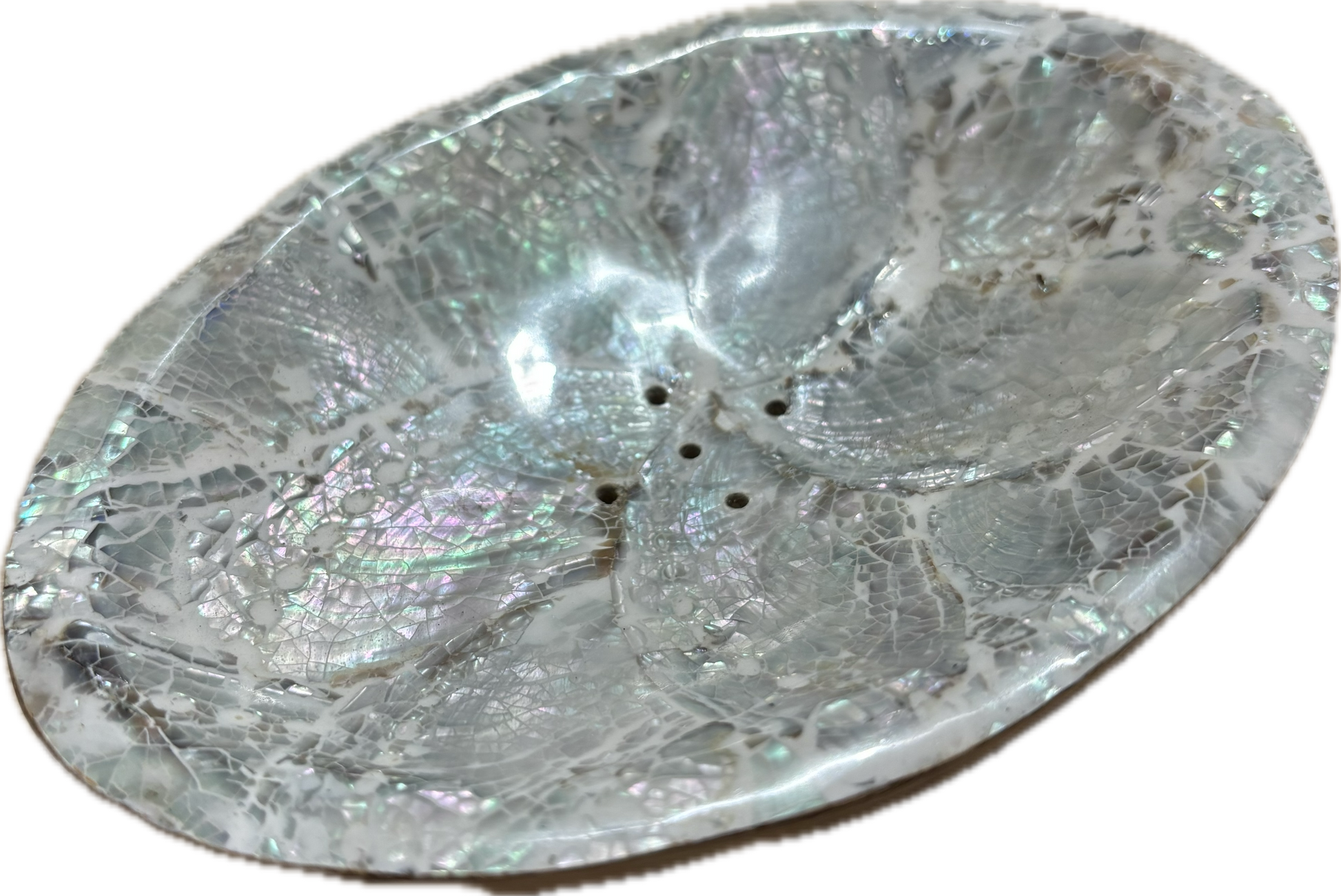 Porte Savon Oval Bois D'olivier Nacre Gris