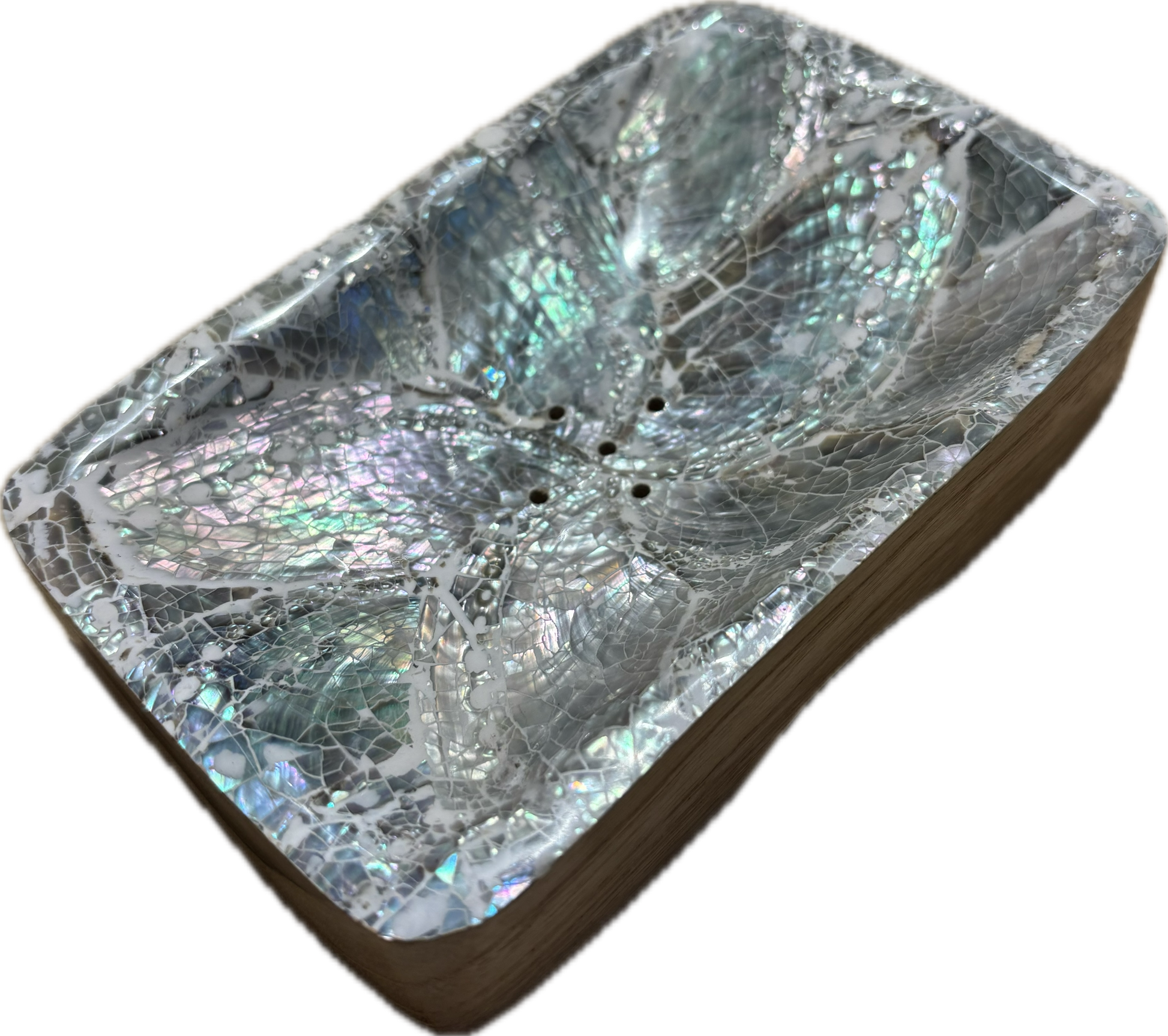 Porte Savon Rectangle Bois D'olivier Nacre Gris