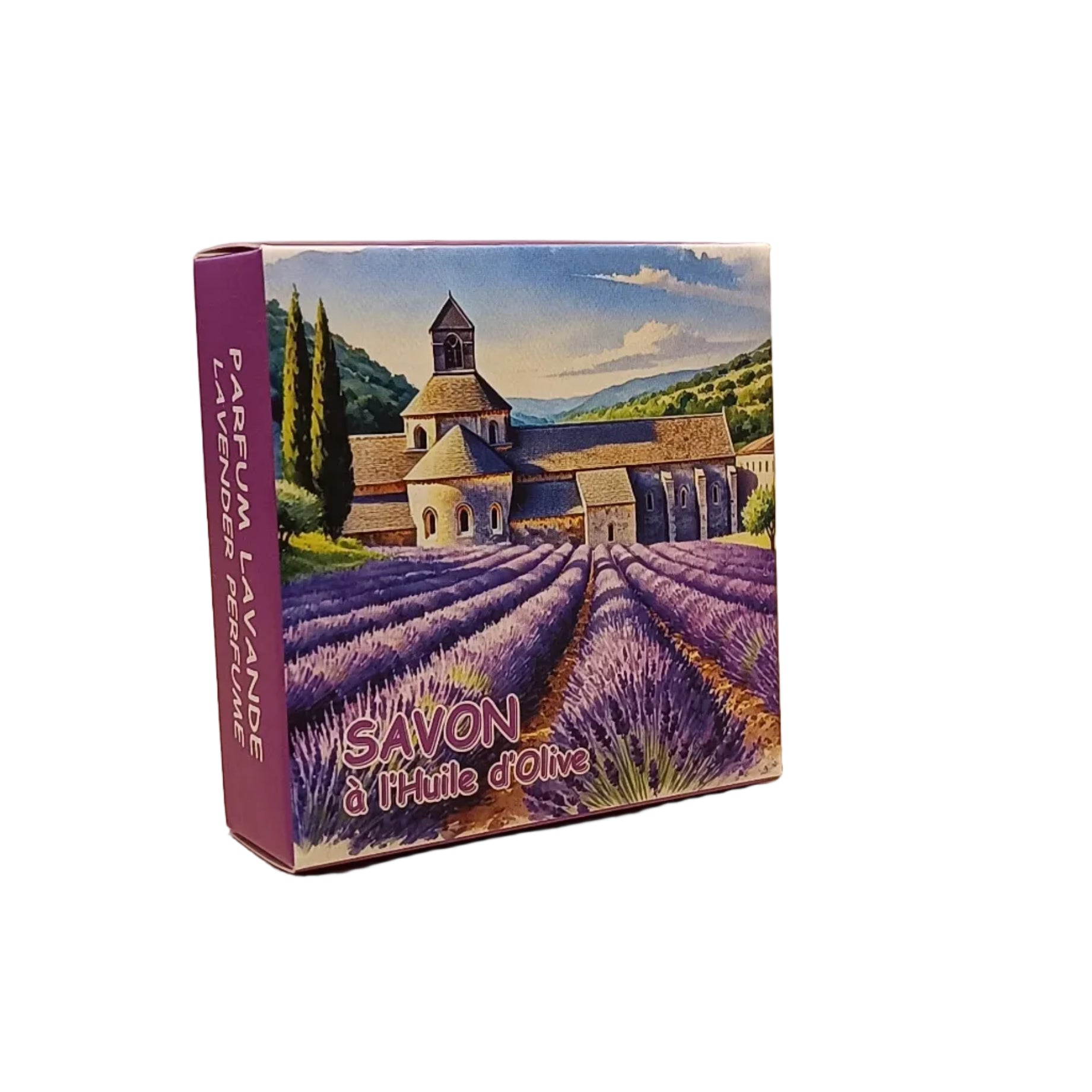 Savon de 100g Abbaye De Senanque au parfum de lavande dans son étui cartonné.